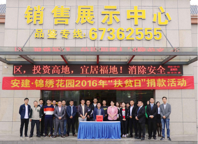 為響應(yīng)第三個“全國扶貧日”,根據(jù)集團工會“關(guān)于組織開展2016年‘扶貧日’職工捐款活動的通知”的文件精神要求,安建地產(chǎn)機關(guān)及所屬各項目公司紛紛舉行了隆重的愛心捐款儀式。公司員工積極踴躍參與,慷慨解囊,一些出差在外的領(lǐng)導和員工,得知捐款消息后立即委托其他同事代捐。