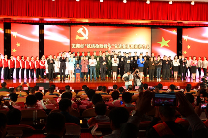會上,安徽交航青弋江項目部因積極響應蕪湖市水務局的號召,助力蕪湖市開展抗洪搶險救災行動,踐行安徽建工的責任與擔當,被中共蕪湖市委、蕪湖市人民政府授予抗洪搶險救災“先進集體”榮譽稱號。
