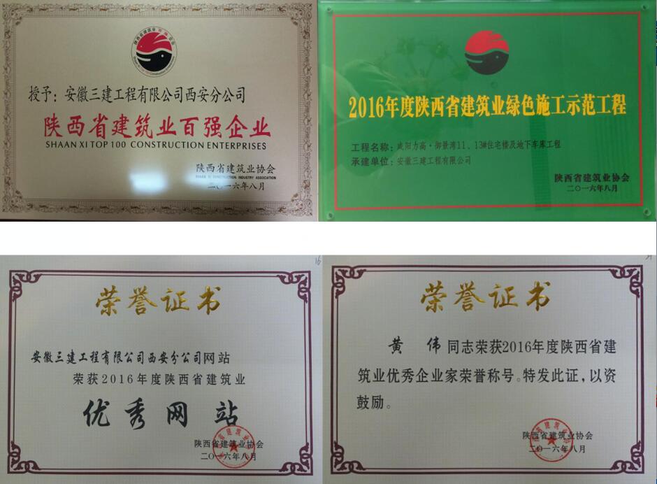 大會對先進(jìn)集體、優(yōu)秀個人進(jìn)行了表彰,安徽三建西安分公司榮獲2015年度陜西省建筑業(yè)“百強企業(yè)”,此次是第三次獲此殊榮,排名第42位,比上年度47位提升了5位;咸陽力高·御景灣11、13#樓住宅樓及地下車庫工程榮獲2016年度陜西省建筑業(yè)綠色施工示范工程獎,安徽三建西安分公司網(wǎng)站被評為2016年度陜西省建筑業(yè)優(yōu)秀網(wǎng)站,總經(jīng)理黃偉被評為2016年度陜西省建筑業(yè)優(yōu)秀企業(yè)家、優(yōu)秀項目經(jīng)理,章能久同志榮獲“優(yōu)秀聯(lián)絡(luò)員”稱號。