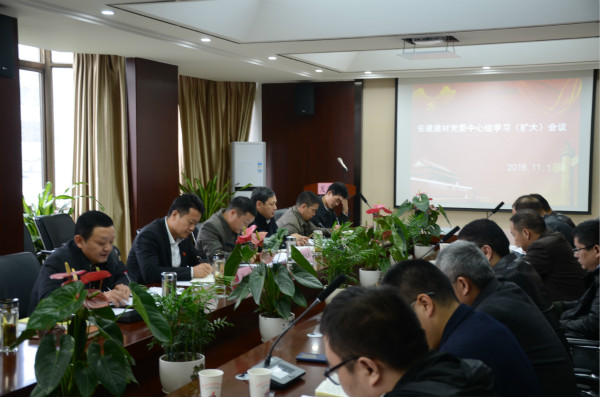 2016年11月1日下午,安建建材在機(jī)關(guān)七樓會(huì)議室召開(kāi)了黨委中心組學(xué)習(xí)(擴(kuò)大)會(huì)議。公司領(lǐng)導(dǎo)班子成員、機(jī)關(guān)各部門負(fù)責(zé)人以及各子(分)公司黨政負(fù)責(zé)人參加會(huì)議。會(huì)議由安建建材董事長(zhǎng)、黨委書記、總經(jīng)理張鍵同志主持。
