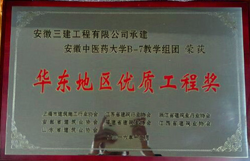 近日,由安徽三建七公司承建的安徽省總工會綜合樓和附屬樓工程、安徽中醫(yī)學(xué)院少荃湖新校區(qū)B7教學(xué)組團(tuán)主體工程雙雙喜獲2016年度“華東地區(qū)優(yōu)質(zhì)工程獎”。