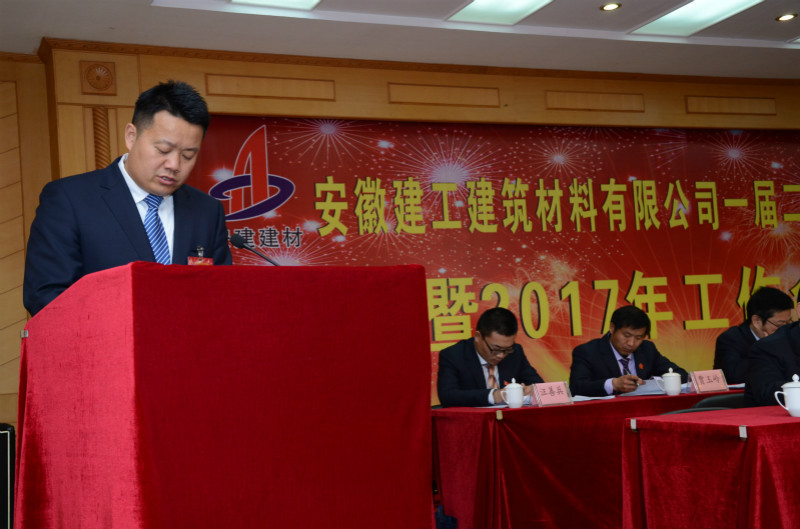 大會聽取并審議通過了《總經(jīng)理工作報告》、《財務工作報告》、《業(yè)務招待費使用情況報告》、《安徽建工建筑材料有限公司薪酬管理制度》、《安徽建工建筑材料有限公司職工聯(lián)席會議制度》,簽訂了目標責任書,表彰了2016年度先進單位、先進集體、先進個人;集團黨委對公司領導班子成員進行了2015—2016年度民主測評。