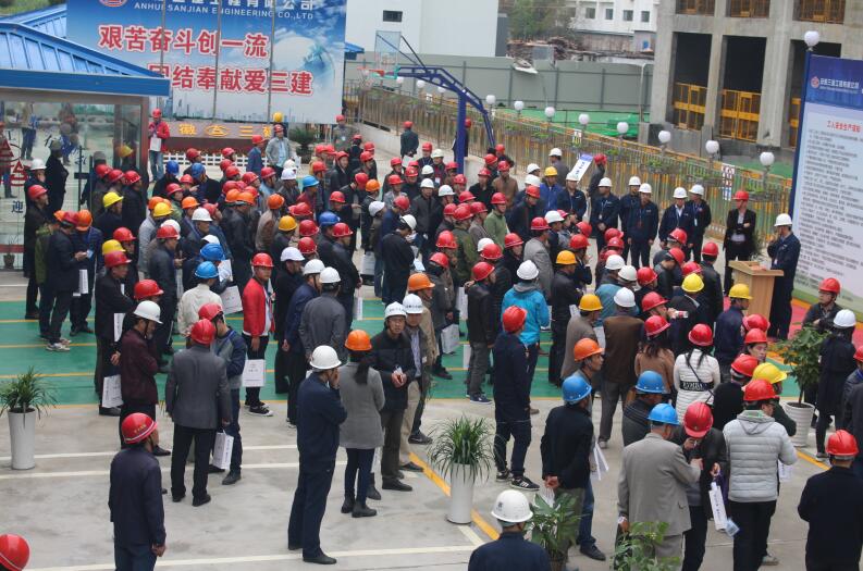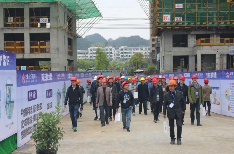 為進(jìn)一步推進(jìn)黃山市建設(shè)工程施工安全生產(chǎn)和文明施工標(biāo)準(zhǔn)化工地的創(chuàng)建以及宣傳創(chuàng)建經(jīng)驗(yàn)和標(biāo)準(zhǔn)化做法,4月11日,黃山建筑管理處組織黃山市二級(jí)以上施工總承包和監(jiān)理企業(yè)主要負(fù)責(zé)人及分管經(jīng)理、安全科長(zhǎng),架業(yè)公司負(fù)責(zé)人,中心城區(qū)在建項(xiàng)目的負(fù)責(zé)人及項(xiàng)目總監(jiān)等近三百人的觀摩團(tuán)蒞臨安徽三建二分公司承建的安徽三建栢悅?cè)A庭項(xiàng)目進(jìn)行現(xiàn)場(chǎng)實(shí)地觀摩,這也是今年以來(lái)黃山市建筑管理處組織的最大一次觀摩交流活動(dòng)。