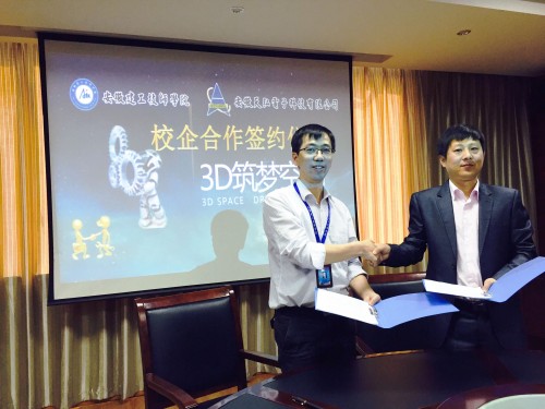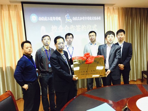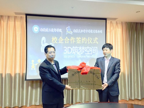 2017年5月5日上午8:30分,技師學(xué)院與安徽天弘電子科技有限公司校企合作簽約暨揭牌儀式在學(xué)院三樓會(huì)議室舉行。來自企業(yè)方代表安徽天弘電子科技有限公司總經(jīng)理賈昌云一行四人,技師學(xué)院分管教學(xué)副院長周元清、機(jī)電系黨支部書記李波、副主任曹新彩、助理江東波、教研主任周隆興出席簽約儀式。簽約儀式由李波書記主持,周元清副院長親自為雙方合作共建的3D成型創(chuàng)客空間揭牌,曹新彩副主任與賈昌云總經(jīng)理代表雙方在本著“優(yōu)勢互補(bǔ),資源共享,互惠雙贏,共同發(fā)展”的原則下簽署校企合作協(xié)議書。