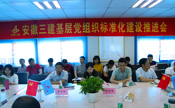 觀摩結(jié)束后,現(xiàn)場召開黨組織標(biāo)化建設(shè)推進(jìn)會。會上,三建公司黨工部針對《安徽三建工程有限公司基層黨組織標(biāo)準(zhǔn)化建設(shè)一本通》和《安徽三建工程有限公司基層黨組織標(biāo)準(zhǔn)化建設(shè)指導(dǎo)手冊》等有關(guān)內(nèi)容圍繞組織體系設(shè)置、班子隊伍建設(shè)、黨員教育管理、黨內(nèi)組織生活、發(fā)揮作用途徑、活動場所建設(shè)、黨內(nèi)運行機制及基本工作保障等八個方面進(jìn)行了逐條解讀并就有關(guān)問題進(jìn)行了解答;一公司海南分公司通過視頻短片的形式展現(xiàn)了其開展的“激揚青春、放飛夢想”演講比賽、先進(jìn)事跡報告會、革命傳統(tǒng)教育等系列“紅五月”活動的成果;八公司臨泉聯(lián)合黨支部圍繞八個方面標(biāo)準(zhǔn)化建設(shè)以題為《構(gòu)建基層標(biāo)準(zhǔn)化黨組織 強化基層黨建服務(wù)力量》通過PPT的形式,形象直觀地介紹了在黨組織標(biāo)準(zhǔn)化建設(shè)和項目黨建服務(wù)品牌創(chuàng)建中的經(jīng)驗做法。