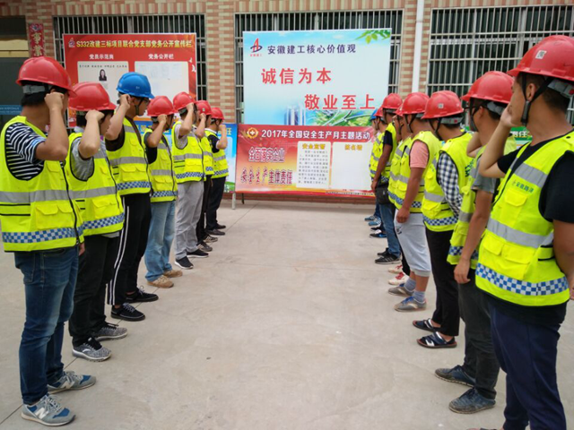 我是一名安徽建工人,我鄭重宣誓:時刻注意安全,遵守安全法規(guī)。履行安全職責(zé),提高安全技能。杜絕三違現(xiàn)象,保證四不傷害。強(qiáng)化紅線意識,促進(jìn)安全發(fā)展。為了家人幸福、企業(yè)發(fā)展,誓做建工“安全人”。錚錚誓言響徹云霄,筆尖揮斥千金承諾。6月1日至2日,安徽路港公司機(jī)關(guān)及所屬各單位、項(xiàng)目部莊嚴(yán)舉行了2017年“安全生產(chǎn)月”宣誓簽名儀式,拉開了今年以“全面落實(shí)企業(yè)安全生產(chǎn)主體責(zé)任”為主題的“安全生產(chǎn)月”系列活動序幕。