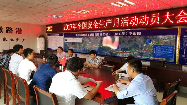 (圖為安徽路港G318改建工程項(xiàng)目部召開動員會并舉行宣誓簽名儀式)