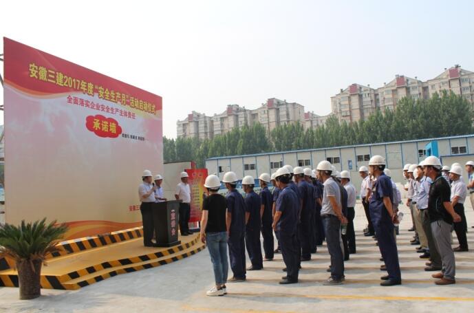 啟動(dòng)儀式上,李家保講述了活動(dòng)主要流程和相關(guān)事宜,王緒良宣讀了《安徽三建2017年“安全生產(chǎn)月”活動(dòng)實(shí)施方案》。何洪春緊緊圍繞“全面落實(shí)企業(yè)安全生產(chǎn)主體責(zé)任”主題從不同角度對(duì)活動(dòng)重點(diǎn)提出了具體要求。他指出,要以“安全生產(chǎn)月”活動(dòng)為契機(jī),進(jìn)一步加大安全生產(chǎn)宣傳教育工作力度,推動(dòng)企業(yè)落實(shí)安全生產(chǎn)主體責(zé)任,全面提高各級(jí)員工安全生產(chǎn)素質(zhì),有效防范和遏制生產(chǎn)安全事故,通過(guò)扎實(shí)開(kāi)展安全生產(chǎn)教育、事故案例警示、安全生產(chǎn)巡查、應(yīng)急救援演練等系列活動(dòng),確保“安全生產(chǎn)月”活動(dòng)落到實(shí)處、取得實(shí)效。
