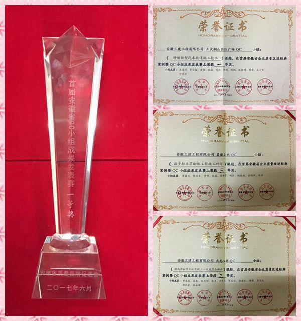 在6月13日至6月15日舉行的“首屆安徽省企業(yè)質(zhì)量改進(jìn)經(jīng)典案例暨QC小組成果發(fā)表賽”中,安徽三建共計(jì)3項(xiàng)QC小組活動(dòng)成果經(jīng)過(guò)激烈角逐,榮獲2017年“安徽省企業(yè)質(zhì)量改進(jìn)經(jīng)典案例暨QC小組成果”一等獎(jiǎng)、三等獎(jiǎng)。
