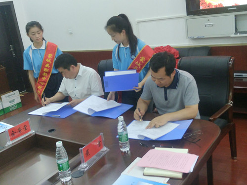 張衛(wèi)東院長、方振勇校長代表兩校在合作辦學協(xié)議書上簽字。簽約后,亳州市教育局副局長方顯啟、蒙城縣教育局副局長戴雷、蒙城職高校長方振勇、學院張衛(wèi)東院長共同揭牌。