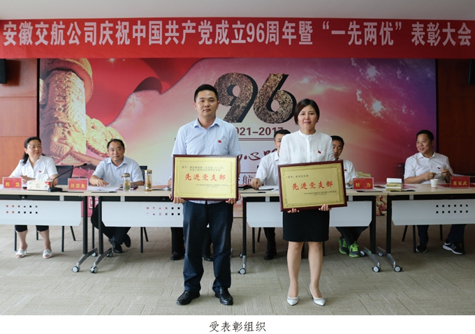 6月26日下午,安徽交航公司慶祝中國共產(chǎn)黨成立96周年暨“一先兩優(yōu)”表彰大會在肥隆重召開。公司領(lǐng)導(dǎo)班子成員、黨委委員,各黨支部書記、副書記,“先進黨支部”代表、“優(yōu)秀共產(chǎn)黨員”獲得者、“優(yōu)秀黨務(wù)工作者”獲得者,入黨積極分子以及機關(guān)全體工作人員參加會議。
