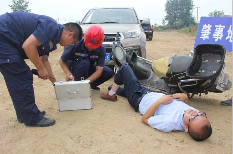 本次交通事故應(yīng)急演練是模擬在052縣道與新建段交叉路口,項(xiàng)目部車輛與當(dāng)?shù)厝藛T所騎行的電瓶車發(fā)展碰撞,導(dǎo)致電瓶車駕駛員受傷骨折,通過(guò)該項(xiàng)目部起動(dòng)應(yīng)急預(yù)案展開救援,各救援小組在項(xiàng)目部、工管部和公司以及與110、120的緊密聯(lián)合,成功搶險(xiǎn)。此外,還開展了安徽建工安全誓詞宣誓活動(dòng)和安全消防應(yīng)急演練,旨在提高項(xiàng)目職工安全生產(chǎn)意識(shí)和火災(zāi)應(yīng)急救援能力。
