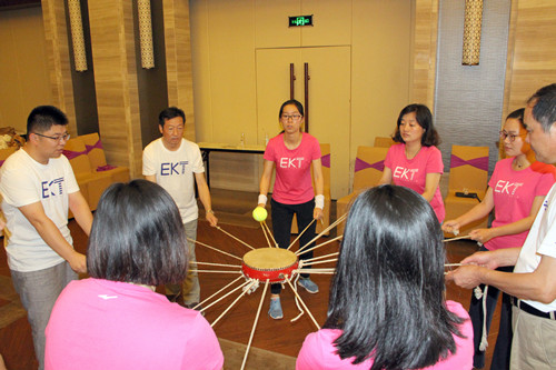 從破冰熱身到團隊組建,從速度與激情到鼓動人心等每一個培訓環(huán)節(jié)都充滿智慧和挑戰(zhàn)。參加培訓的教職員工都以積極的態(tài)度,飽滿的熱情,全身心地投入到培訓中,充分體現(xiàn)了學院教職工凝心聚力、眾志成城、共筑夢想的良好精神面貌。整個培訓過程,大家始終保持高昂的斗志,為了贏得每一個小小的勝利,每一個團隊都齊心協(xié)力、團結(jié)拼搏,每一個人都開動腦筋,拼盡全力,完成了各種挑戰(zhàn)任務,表現(xiàn)出非常高的團隊精神和集體榮譽感。在“前方有難,后方支援”的游戲環(huán)節(jié)中,我們看到為了支援前方,后方不管有多大困難都傾盡全力支持。在“鼓動人心”的游戲環(huán)節(jié)中,那專注的眼神,迅疾的挪位,完美無瑕的配合,令人為之動容。在“雙解碼”徒步行進中,參訓隊員一邊頭頂炎炎烈日,互相攙扶,踏過嶙峋溝壑,一邊緊鑼密鼓地敲定解決問題的最佳方案,布置每個人之間的分工協(xié)作。就這樣,所有的困難都被我們克服,所有的挑戰(zhàn)都被我們戰(zhàn)勝。培訓過程中,大家增進了友誼,加深了了解,拉近了彼此之間的距離。大家深深地體會到,我們的教工隊伍是一支充滿激情和有著無限潛力的隊伍,只要大家團結(jié)一心,就沒有克服不了的困難。