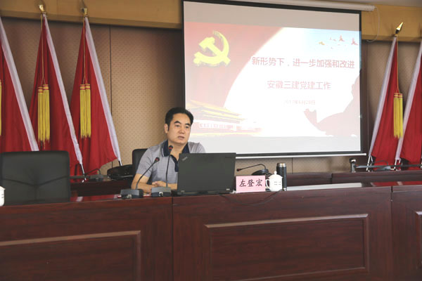 為進(jìn)一步推進(jìn)“兩學(xué)一做”學(xué)習(xí)教育常態(tài)化制度化,扎實(shí)推動(dòng)基層黨組織標(biāo)準(zhǔn)化建設(shè),6月29日上午在建筑工業(yè)有限公司會(huì)議室,安徽三建公司黨委書(shū)記左登宏帶頭上黨課,為該司領(lǐng)導(dǎo)班子成員,外地分公司黨政負(fù)責(zé)人,合肥地區(qū)各單位黨員干部,公司機(jī)關(guān)中層副職以上黨員干部;項(xiàng)目黨支部負(fù)責(zé)人,工會(huì)、團(tuán)組織負(fù)責(zé)人、政工干事及受表彰人員、宣誓的預(yù)備黨員等230多人上了一堂主題為“新形勢(shì)下,進(jìn)一步加強(qiáng)和改進(jìn)安徽三建黨建工作”的專題黨課。黨課由公司黨委副書(shū)記黃麗春主持。