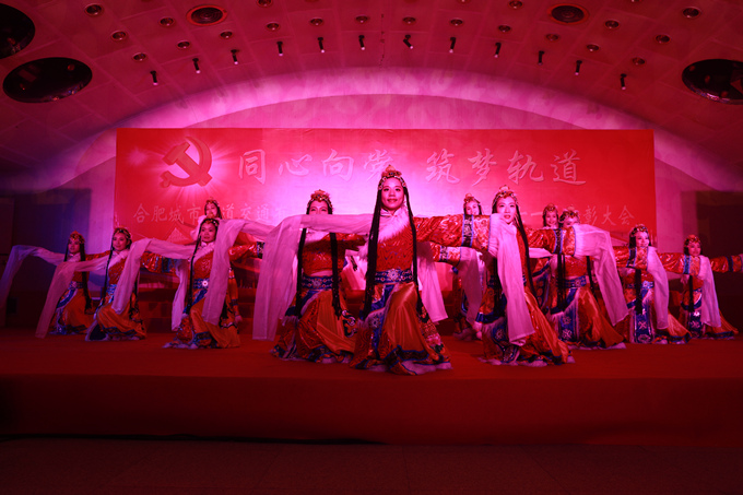 金色的錘鐮,熠熠生輝,放射光芒?!笆钦l幫咱們修公路,是誰幫咱們架橋梁,是那親人解放軍,是那親人共產(chǎn)黨?!?月1日,在偉大的中國(guó)共產(chǎn)黨成立96周年之際,安徽交航公司精心選送的藏族舞蹈《洗衣歌》在合肥市軌道交通有限公司紀(jì)念建黨96周年暨“七一”表彰大會(huì)文藝匯演中順利演出。