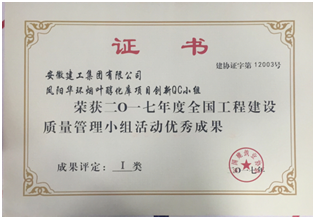 安建建設(shè)2017年度共獲得省級QC優(yōu)秀成果獎5項,國家級QC優(yōu)秀成果獎1項,QC小組活動取得的成績,體現(xiàn)了公司采取的技術(shù)質(zhì)量創(chuàng)新管理機制,大大激發(fā)了員工參與活動的主觀能動性,有效提高了對QC活動成果的總結(jié)力度,更展現(xiàn)了我公司技術(shù)人員良好的精神風貌。