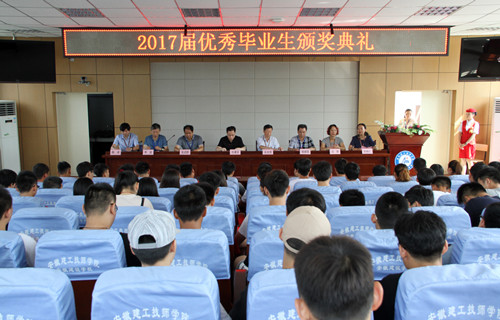 典禮在校歌《揚(yáng)帆起航》中拉開帷幕。典禮上,吳良照書記宣讀了《關(guān)于表彰2017屆優(yōu)秀畢業(yè)生的決定》;來自14級工程造價(jià)技師2班的葛夢迪同學(xué)代表優(yōu)秀畢業(yè)生發(fā)言;學(xué)院給評選出來的39名優(yōu)秀畢業(yè)生頒發(fā)了獎(jiǎng)牌和證書。