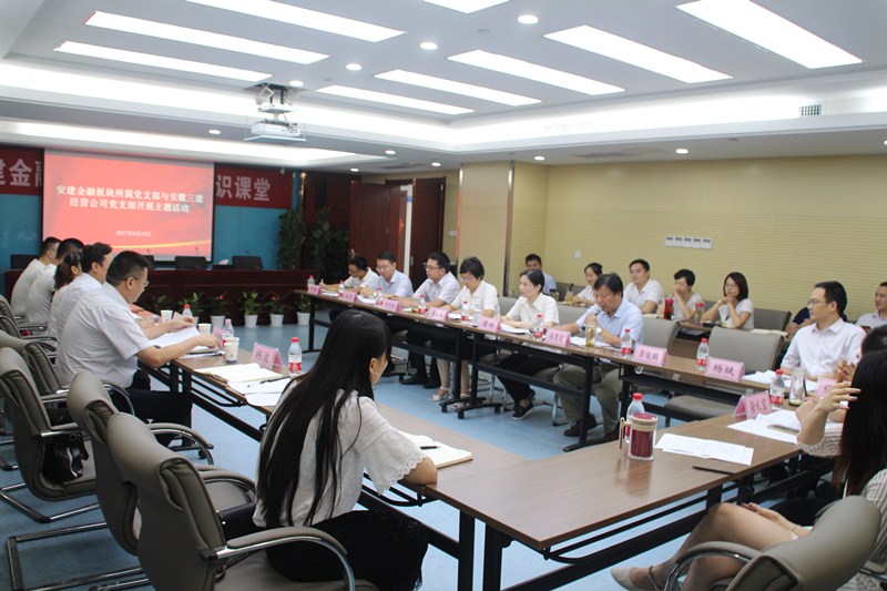 8月10日,安建金融板塊所屬黨支部與安徽三建機(jī)關(guān)黨總支第一支部聯(lián)合開展以業(yè)務(wù)交流為主題的黨員活動。安建財務(wù)公司黨總支書記、副總經(jīng)理潘琳,安徽三建公司黨委委員、副總經(jīng)理劉順利以及安建金融板塊、安徽三建經(jīng)營公司的黨員骨干參加了此次活動。此次活動由安建財務(wù)公司總經(jīng)理助理陳茂炎主持。