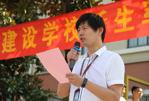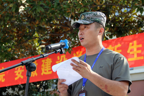 任建設(shè)副院長作軍訓(xùn)動員講話,他首先代表學(xué)院對2017級新同學(xué)表示熱烈歡迎,向全體軍事教官表示感謝,勉勵所有參訓(xùn)同學(xué)要以振奮的精神狀態(tài),端正態(tài)度,接受軍訓(xùn)的錘煉,高標(biāo)準(zhǔn)高質(zhì)量完成軍事訓(xùn)練任務(wù)。在介紹學(xué)院近年來的改革發(fā)展成就后,他對全體軍事教官提出三點(diǎn)要求:一要明確責(zé)任,認(rèn)真履行職責(zé)。要本著對受訓(xùn)學(xué)生負(fù)責(zé)、對學(xué)校、對工作負(fù)責(zé)的態(tài)度,明確帶訓(xùn)任務(wù),認(rèn)真履行好職責(zé);二要科學(xué)組訓(xùn),用心抓好訓(xùn)練。要嚴(yán)密組織、科學(xué)實(shí)訓(xùn),要大抓會操競賽、內(nèi)務(wù)整理競賽,確保軍訓(xùn)質(zhì)量;三要嚴(yán)守紀(jì)律,帶頭執(zhí)行規(guī)定。嚴(yán)格遵守軍訓(xùn)的規(guī)定,尊重軍訓(xùn)學(xué)生,堅(jiān)決不允許發(fā)生任何違規(guī)違紀(jì)現(xiàn)象。同時,他還對參訓(xùn)的全體同學(xué)提出四點(diǎn)希望:一是端正思想認(rèn)識,自覺把軍訓(xùn)作為提升自我素質(zhì)的一次良好機(jī)遇。自覺從思想上把自己當(dāng)成一名“軍人”,時時、處處按照軍人標(biāo)準(zhǔn)嚴(yán)格要求自己;二是樹立吃苦意識,大力發(fā)揚(yáng)軍人不怕苦、不怕累的精神。在軍訓(xùn)過程中提高身體素質(zhì)和心理素質(zhì);三是強(qiáng)化服從意識,自覺做到服從命令,聽從指揮,養(yǎng)成令行禁止、步調(diào)一致的良好作風(fēng);四是配合軍事教官工作,高質(zhì)量完成軍事訓(xùn)練任務(wù)。