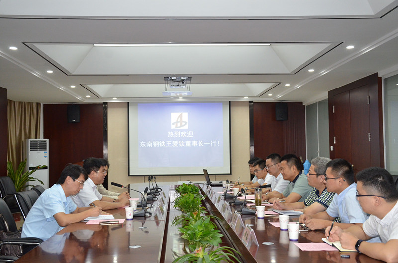 2017年8月30日下午,徐州東南鋼鐵工業(yè)有限公司王愛欽董事長一行來我公司洽談業(yè)務(wù)。公司董事長、黨委書記、總經(jīng)理張鍵熱情接待了王總一行并主持召開了業(yè)務(wù)洽談會(huì)。