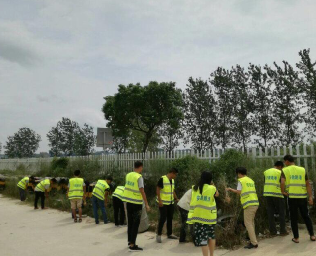 (圖為S332安慶至望江改建工程三標(biāo)項(xiàng)目黨支部組織全體黨員、團(tuán)員青年開(kāi)展除草志愿服務(wù)活動(dòng))