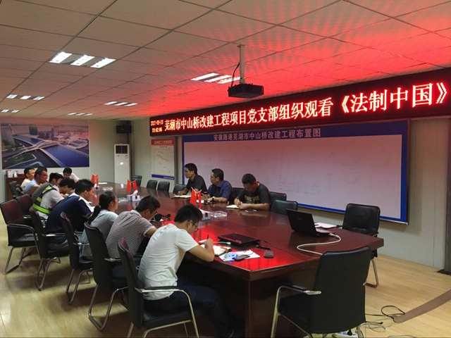 (圖為蕪湖市中山橋項(xiàng)目黨支部組織觀看《法制中國(guó)》紀(jì)錄片)