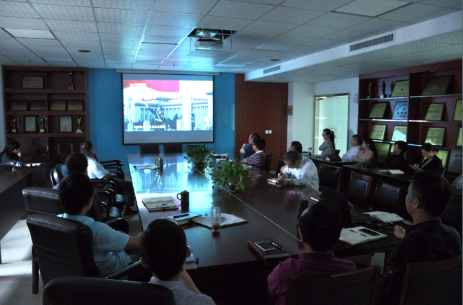 (圖為公司機(jī)關(guān)第一黨支部組織召開(kāi)黨員大會(huì),并開(kāi)展警示教育,集中觀看專題片《巡視利劍》)