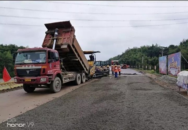 黃山市歙黟路節(jié)日期間進(jìn)行水穩(wěn)施工