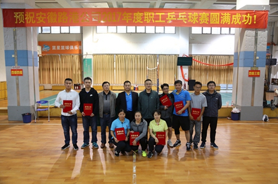 為更好地發(fā)揮職工體育活動(dòng)在建設(shè)和諧企業(yè)中的積極作用,豐富公司職工業(yè)余文化生活,安徽路港公司工會(huì)于10月13日在安徽省全民健身活動(dòng)中心舉辦了2017年度職工乒乓球比賽。集團(tuán)工會(huì)調(diào)研員胡愛(ài)紅、安徽路港公司黨委書(shū)記馬斌、工會(huì)主席干戈親臨現(xiàn)場(chǎng)為選手加油鼓勁。來(lái)自公司機(jī)關(guān)和路面分公司、路港通試驗(yàn)檢測(cè)公司、郎溪路04標(biāo)等子分公司、項(xiàng)目部的19支球隊(duì)、39名選手參加了男子單打、女子單打兩個(gè)項(xiàng)目的比賽。