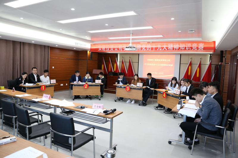 11月9日下午,安建投資公司學習貫徹黨的十九大精神知識競賽成功舉辦。來自公司機關(guān)及所屬各項目公司15名隊員組成的5支代表隊匯聚一堂,展開激烈角逐。公司總經(jīng)理、黨總支副書記朱忠明,黨總支書記、副總經(jīng)理余志剛,黨總支委員、紀檢委員、副總經(jīng)理朱友良出席比賽。