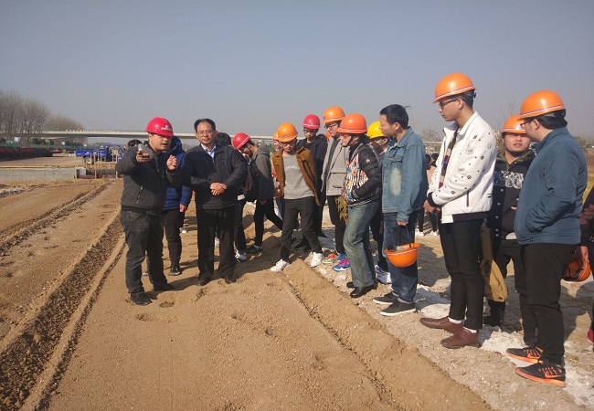 11月23日,安徽交通職業(yè)技術(shù)學(xué)院校領(lǐng)導(dǎo)及同學(xué)們來到路橋集團(tuán)蕪合三標(biāo)項(xiàng)目部開展學(xué)習(xí)與實(shí)訓(xùn)交流。項(xiàng)目部負(fù)責(zé)人帶領(lǐng)同學(xué)們進(jìn)入施工現(xiàn)場(chǎng),途中講述公司的發(fā)展情況、項(xiàng)目部的施工情況,以及項(xiàng)目的運(yùn)作流程和管理方式。項(xiàng)目總工著重介紹了路基施工工藝、方法及要點(diǎn),并在會(huì)議室對(duì)項(xiàng)目全線的施工進(jìn)度圖和圖紙給同學(xué)們進(jìn)行講解說明,使同學(xué)們能夠?qū)局R(shí)與實(shí)際操作融會(huì)貫通。