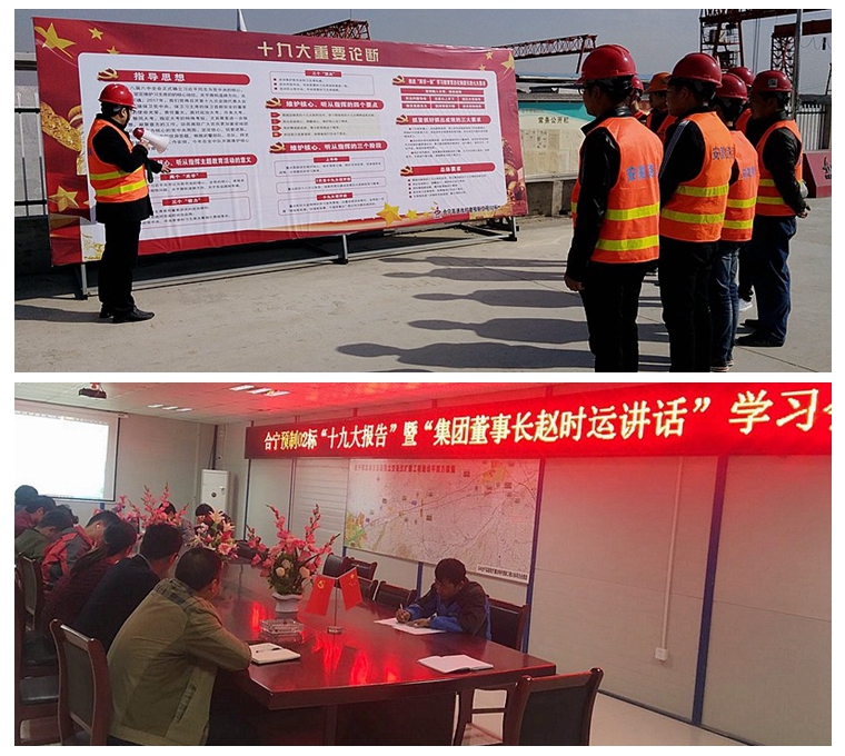 合寧預(yù)制標(biāo)項(xiàng)目黨支部于近日組織召開黨的十九大精神學(xué)習(xí)宣貫會(huì),黨支部書記劉欽結(jié)合十九大召開以來自身的學(xué)習(xí)體會(huì),向與會(huì)人員宣貫了會(huì)議精神,要求全體員工要將會(huì)議精神深刻領(lǐng)會(huì),并貫穿到項(xiàng)目管理及施工生產(chǎn)中。該項(xiàng)目黨支部專門制定了學(xué)習(xí)十九大精神的學(xué)習(xí)計(jì)劃,將《黨章》、《十九大報(bào)告單行本》、《十九大報(bào)告輔導(dǎo)讀本》等發(fā)放到黨員干部手中。在項(xiàng)目部駐地醒目位置專門設(shè)立了十九大精神宣傳展板,在宣傳欄張貼了十九大相關(guān)學(xué)習(xí)資料,多措并舉營(yíng)造學(xué)習(xí)氛圍。