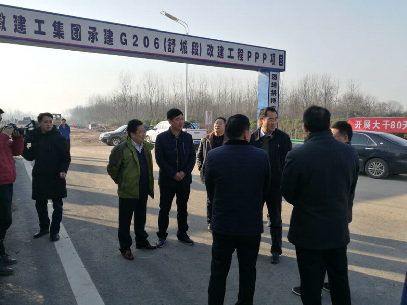 12月19日,安徽省公路局黨委委員、副局長(zhǎng)孫東根一行蒞臨G206(舒城段)改建工程PPP項(xiàng)目檢查指導(dǎo)工作。六安市交通局副局長(zhǎng)楊廣來(lái),舒城縣交通局局長(zhǎng)許教育,舒城安建投資有限公司公司董事長(zhǎng)、總經(jīng)理?xiàng)钴?,施工、監(jiān)理單位相關(guān)負(fù)責(zé)人陪同檢查。