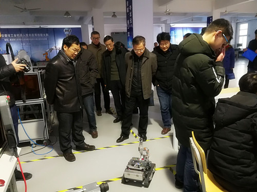 張衛(wèi)東院長對(duì)安徽六安技師學(xué)院的熱情接待表示感謝,并高度評(píng)價(jià)和贊譽(yù)了安徽六安技師學(xué)院在行業(yè)辦學(xué)上取得的成績以及特色的彰顯,尤其是良好的辦學(xué)氛圍值得我們思考學(xué)習(xí),希望能以此次考察為契機(jī),搭建良好的溝通渠道、建立長期合作的機(jī)制。簡短的會(huì)議之后,我院考察學(xué)習(xí)的同志與安徽六安技師學(xué)院領(lǐng)導(dǎo)一起深入教室、創(chuàng)業(yè)培訓(xùn)基地、機(jī)器人實(shí)訓(xùn)場地等場所實(shí)地考察,并與相關(guān)職能部門進(jìn)行對(duì)接,并就各自部門的工作深入探討交流。