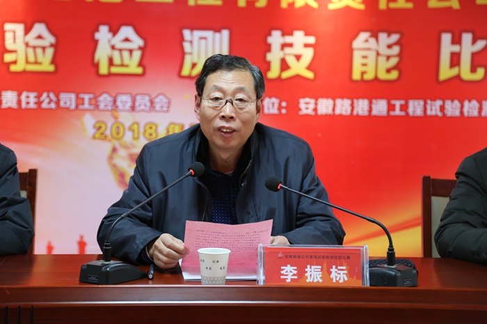 安徽路港公司董事長、總經(jīng)理李振標出席開幕式并發(fā)表講話。他指出,此次技能比賽是廣大試驗人員展現(xiàn)精神風采和技能水平的一個公平競技平臺,是公司試驗技術(shù)能力的全方位展現(xiàn),對加快推進公司試驗人員隊伍建設(shè)上臺階、全面促進公司試驗工作整體上水平起著重要作用。希望參賽選手嚴格遵守比賽規(guī)則,賽出風格、賽出水平,以扎實的理論功底、良好的心理素質(zhì)和規(guī)范的操作技術(shù),充分展示安徽路港試驗檢測人員的良好精神風貌和精湛技術(shù)水平。