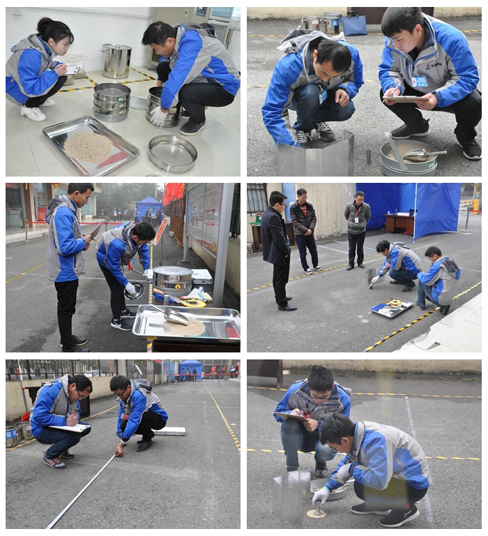 本次大賽由安徽路港公司工會主辦,安徽路港通試驗檢測公司承辦,分為理論測試和實操測試兩部分。理論測試試題主要包括單項選擇題、多項選擇題、判斷題、計算四大類,實操測試主要包括細集料檢測、構(gòu)造深度檢測等內(nèi)容。比賽過程中,公司紀委、黨委工作部等職能部門全程參與,實時進行監(jiān)督,保證了比賽過程的公平公正公開。大賽地點設(shè)在安徽路港通試驗檢測公司,設(shè)施設(shè)備齊全,比賽環(huán)境一流。