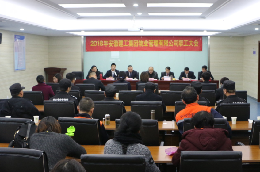 1月21日,安徽建工集團(tuán)物業(yè)管理有限公司在安建大廈召開公司2018年職工大會(huì)。安徽建工服務(wù)中心黨總支書記、總經(jīng)理盧躍華同志,安徽建工服務(wù)中心副總經(jīng)理、建工物業(yè)黨支部書記、董事長(zhǎng)王金宏同志,總經(jīng)理張振武同志,安徽建工服務(wù)中心工會(huì)副主席、綜合部主任徐斌同志等出席會(huì)議。