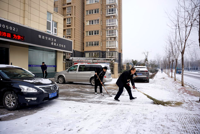 1月25日至27日,安建地產(chǎn)同興公司負責人帶領公司職工鏟雪除冰,給安建地產(chǎn)·錦繡花園小區(qū)居民業(yè)主提供一個安全的出行環(huán)境。