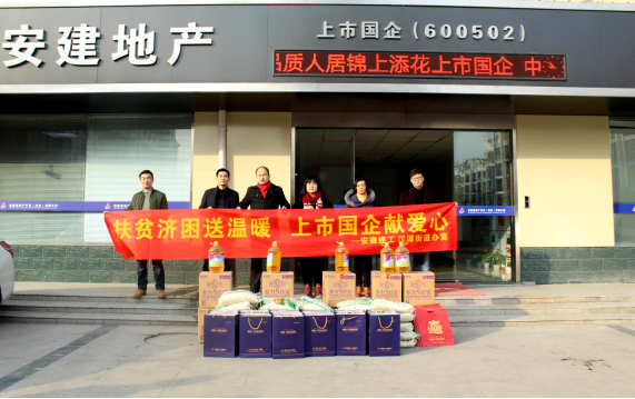 為積極落實(shí)十九大“精準(zhǔn)扶貧、精準(zhǔn)脫貧”理念,大力弘揚(yáng)“奉獻(xiàn)、友愛(ài)、互助、進(jìn)步”的國(guó)企志愿服務(wù)精神,1月30日,安建地產(chǎn)沛縣公司聯(lián)合沛縣漢源街道辦組織開(kāi)展“扶貧濟(jì)困送溫暖 責(zé)任國(guó)企獻(xiàn)愛(ài)心”新春慰問(wèn)活動(dòng)。