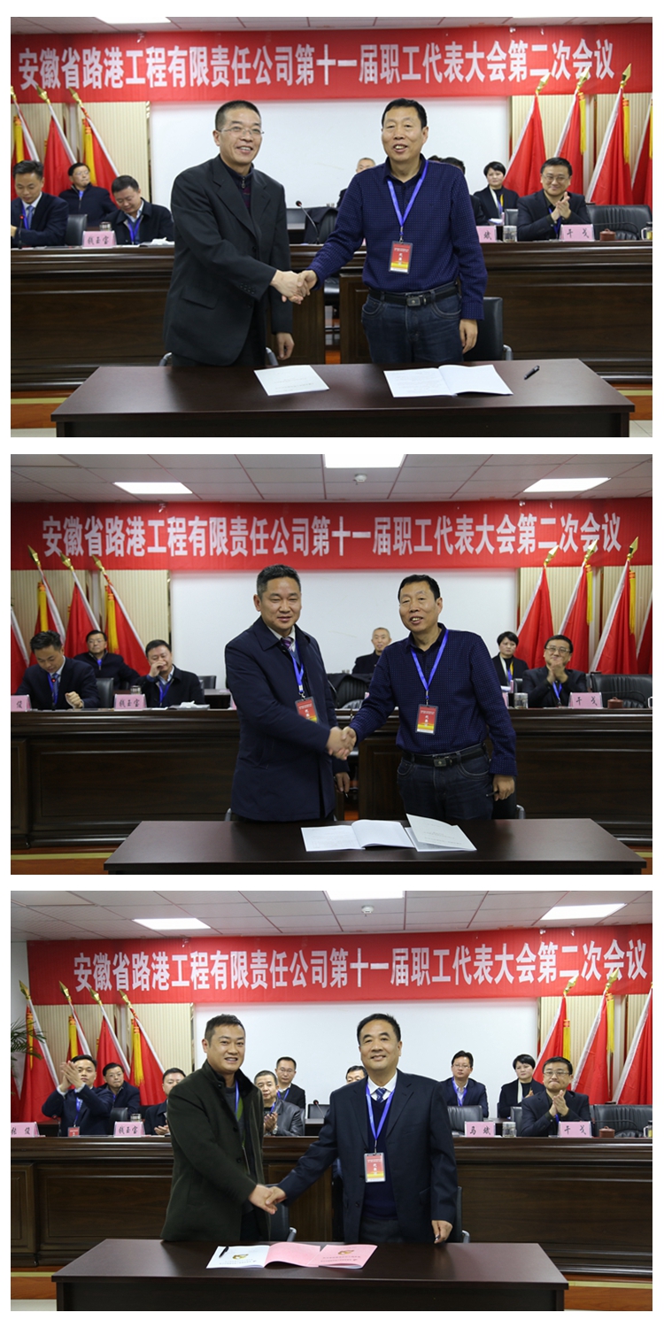 集團(tuán)公司工會(huì)副主席吳曉伍在會(huì)上高度贊揚(yáng)了2017年安徽路港開拓進(jìn)取、凝心聚力、攻堅(jiān)克難的拼搏意志,宣貫了集團(tuán)公司一屆四次職代會(huì)暨2018年工作會(huì)議精神。吳主席指出,一是要認(rèn)真學(xué)習(xí)集團(tuán)公司一屆四次職代會(huì)暨2018年工作會(huì)議精神;二是要加強(qiáng)企業(yè)民主管理,建立健全職代會(huì)制度和廠務(wù)公開制度;三是要抓好公司十一屆二次職代會(huì)精神的貫徹落實(shí),奮力完成全年經(jīng)濟(jì)任務(wù)和黨建目標(biāo)。