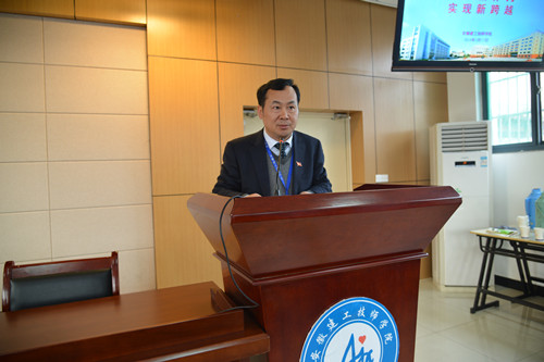 集團公司工會主席徐曉光代表集團工會向此次大會的召開表示熱烈祝賀,他高度肯定了學院2017年工作和取得的“驕人業(yè)績”,特別是獲得安徽建工集團先進單位榮譽稱號,時隔12年獲得集團頒發(fā)的最高榮譽,獎牌含金量高,榮譽來之不易,更是集團公司對學院取得成績的高度肯定。他非常贊同張衛(wèi)東院長作的工作報告,認為報告質(zhì)量很高,內(nèi)容詳實,主題鮮明,思路清晰,切實可行。他從校園面貌煥然一新、學院發(fā)展?jié)摿薮蟆⒙毠しe極主動作為談了對學院三個方面的全新認識;徐主席對學院、全體代表和廣大教職工提出四點希望:一是學院黨委要抓好教職工的學習,特別是思想政治理論學習。用習近平新時代中國特色社會主義思想和黨的十九大精神武裝頭腦、指導實踐、推動工作,扎實開展“不忘初心、牢記使命”主題教育;二是把握機遇,加快發(fā)展。特別是在新校區(qū)建設(shè)上,要做到心往一處想、勁往一處使,用咬定青山不放松的精神向前看、向前走;三是全體代表要在學院改革與發(fā)展中起表率作用。積極參與民主管理、民主決策;引導廣大教職工正確處理好國家、集體、個人三者的關(guān)系,扎實工作。學院領(lǐng)導班子要樹立依靠廣大教職工辦學的思想,激發(fā)他們干事創(chuàng)業(yè)的激情,提高廣大教職工的幸福指數(shù);四是注重內(nèi)涵建設(shè),打造學院特色品牌。要牢牢把握國家、省市大力發(fā)展職教的政策,特別是近期要認真學習貫徹《安徽省人民政府辦公廳關(guān)于深化產(chǎn)教融合的實施意見》皖政辦〔2018〕4號文件精神,深化產(chǎn)教融合,加強教師隊伍建設(shè),做到提質(zhì)增效,辦“家長滿意、企業(yè)滿意、社會滿意”的一流技師學院,抓好各項工作落實,奮力實現(xiàn)全年工作目標。同時,他還要求大家要認真學習貫徹集團公司一屆四次職代會暨2018年工作會議和學院本屆教職工代表大會的精神,加快推進學院轉(zhuǎn)型升級。