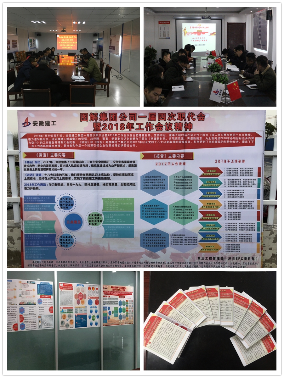 公司所屬各部門、工管部、辦事處和重點(diǎn)項(xiàng)目部把學(xué)習(xí)貫徹集團(tuán)公司黨委書記、董事長(zhǎng)趙時(shí)運(yùn)所作的《深入學(xué)習(xí)貫徹黨的十九大精神 奮力譜寫新時(shí)代一流安徽建工新篇章》重要講話和集團(tuán)公司總經(jīng)理劉家靜所作的《把握新時(shí)代 實(shí)現(xiàn)高質(zhì)量 再譜新篇章 為全面完成2018年各項(xiàng)目標(biāo)任務(wù)而努力奮斗》的工作報(bào)告,公司總經(jīng)理陳傳文所作的《邁入新時(shí)代 展現(xiàn)新作為 實(shí)現(xiàn)新突破 奮力譜寫安建建設(shè)轉(zhuǎn)型發(fā)展新篇章》工作報(bào)告和黨委書記王可武所作的《高舉旗幟 砥礪前行 奮力開創(chuàng)安建建設(shè)轉(zhuǎn)型發(fā)展新局面》講話作為當(dāng)前首要學(xué)習(xí)任務(wù),第一時(shí)間組織召開專題學(xué)習(xí)會(huì),集中學(xué)習(xí)傳達(dá)兩級(jí)職代會(huì)會(huì)議精神。通過早班會(huì)、班后會(huì)、專題會(huì)、座談會(huì)、文化宣傳欄、QQ工作交流群、手機(jī)微信等宣傳形式,將兩級(jí)職代會(huì)精神傳遞到基層每個(gè)角落,把廣大干部職工的思想和行動(dòng)統(tǒng)一到會(huì)議精神上來。