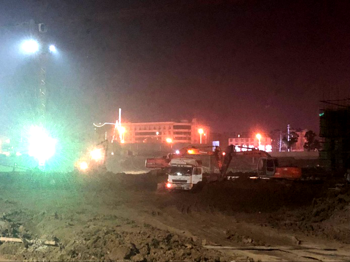 為確保安全文明生產(chǎn),針對項(xiàng)目施工現(xiàn)場,全面開展安全巡查、排查工作,全力確?;咏邓⑦吰轮ёo(hù)、臨時用電、腳手架等重點(diǎn)部位無安全隱患。在施工現(xiàn)場配備足夠的照明設(shè)備以滿足挖機(jī)、渣土車、塔吊等機(jī)械設(shè)備夜間作業(yè),并設(shè)專職安全員執(zhí)勤。