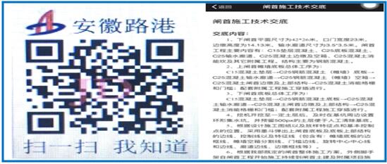 南坪船閘項(xiàng)目部二維碼標(biāo)識(shí)在現(xiàn)場(chǎng)顯要位置集中展示,取得了良好的效果。