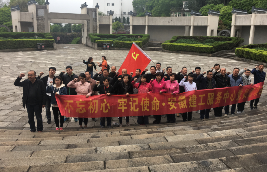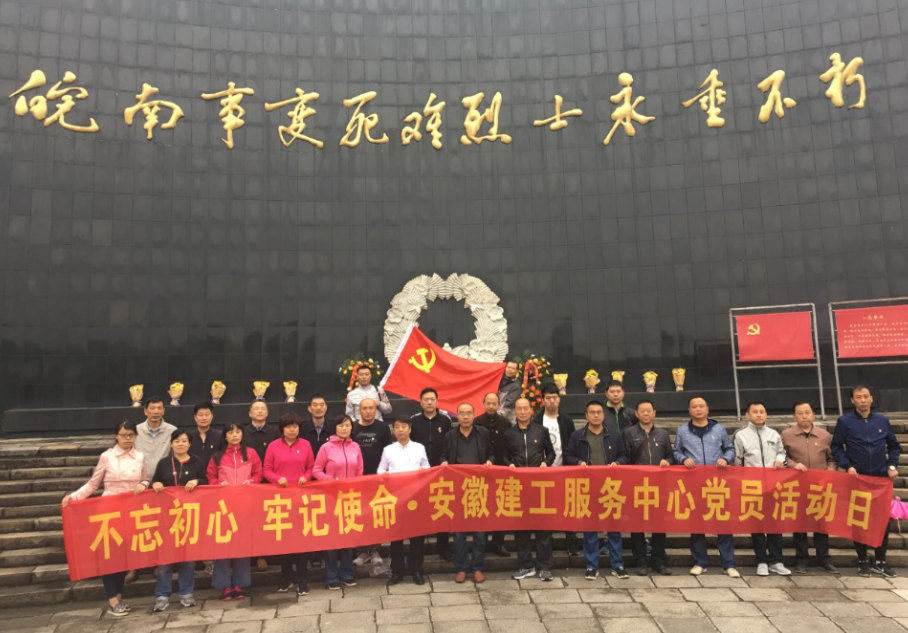 當日清晨,天空下著蒙蒙細雨,增添了一些蕭瑟之感。在皖南事變烈士紀念碑前,服務中心黨總支書記盧躍華同志帶領全體黨員面對鮮紅的黨旗,莊嚴宣誓,重溫入黨誓詞。在鏗鏘有力的宣誓聲中,表達了服務中心全體黨員“不忘初心、牢記使命”的政治信念和堅定決心。