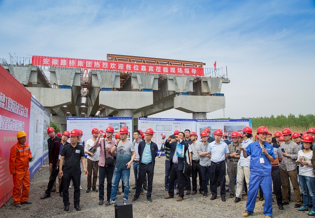 20日下午2:00,與會(huì)專(zhuān)家學(xué)者及代表一行乘車(chē)前往安徽路橋集團(tuán)合安改擴(kuò)建01標(biāo)中派河大橋施工現(xiàn)場(chǎng)觀摩。公司領(lǐng)導(dǎo)班子、工程管理部、總師室、設(shè)計(jì)院、合安改擴(kuò)建01標(biāo)項(xiàng)目接待了觀摩團(tuán)一行。項(xiàng)目負(fù)責(zé)人向觀摩團(tuán)詳細(xì)介紹了中派河大橋設(shè)計(jì)理念、施工重難點(diǎn)、施工工藝、科技創(chuàng)新、安全質(zhì)量管理等內(nèi)容。觀摩團(tuán)在參觀完施工現(xiàn)場(chǎng)后,對(duì)于中派河大橋的施工及我公司管理水平給予高度評(píng)價(jià)。