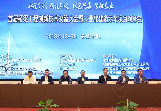 4月19日上午8:30,由中國(guó)交通運(yùn)輸協(xié)會(huì)新技術(shù)促進(jìn)分會(huì)聯(lián)合安徽省公路學(xué)會(huì)等四家單位共同主辦,安徽省路橋工程集團(tuán)有限責(zé)任公司等單位協(xié)辦,北京國(guó)鐵路網(wǎng)信息咨詢中心、路訊雜志社、中華鐵道網(wǎng)承辦的“首屆橋梁工程創(chuàng)新技術(shù)交流大會(huì)暨工業(yè)化建造示范項(xiàng)目觀摩會(huì)”在合肥隆重開(kāi)幕。