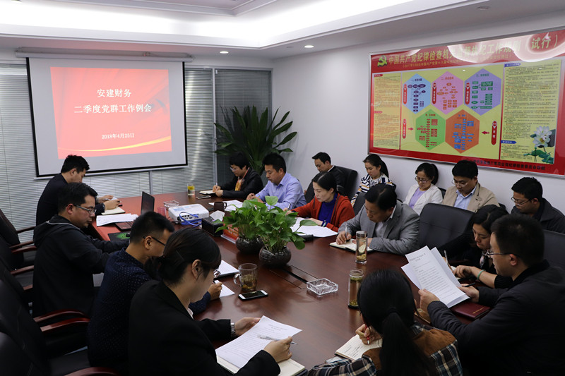 4月25日,安建財務(wù)公司黨總支召開二季度黨群工作例會,公司黨總支書記、副總經(jīng)理潘琳主持會議。副總經(jīng)理、紀(jì)檢委員于忠山,公司黨群部門相關(guān)人員,所屬各黨支部書記、支部委員及各工會小組長參加了會議。