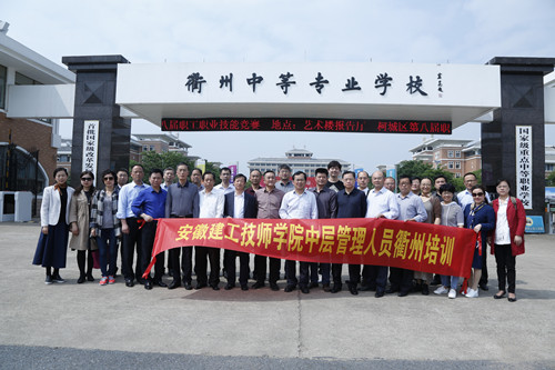 為全面貫徹落實(shí)安徽建工技師學(xué)院2018年七屆二次教代會(huì)精神,深化改革與發(fā)展,進(jìn)一步提升學(xué)院綜合管理和信息化水平,4月27-28日,學(xué)院黨委書記、院長張衛(wèi)東率班子成員及中層干部赴浙江衢州中等專業(yè)學(xué)校、衢州市技師學(xué)院(衢州市工程技術(shù)學(xué)校)學(xué)習(xí)考察校園文化建設(shè)、信息化建設(shè)、學(xué)生管理(德育教育)等方面工作,邀請(qǐng)全國知名職業(yè)教育專家翁孝川(原衢州市教育局副局長、衢州中等專業(yè)學(xué)校校長、衢州市工程技術(shù)學(xué)校校長)、全國知名德育教育專家余國良(原衢州市工程技術(shù)學(xué)校黨總支副書記)全程陪同考察。