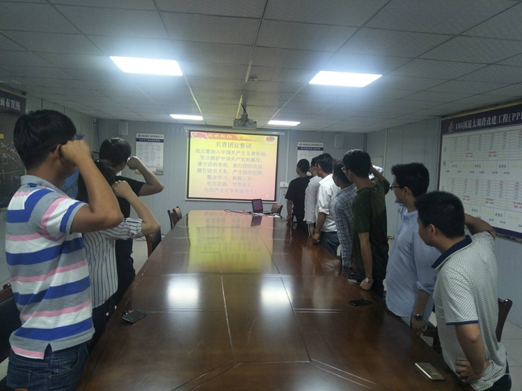 六安龍河路橋項目團支部組織觀看專題片《共青團公開課》